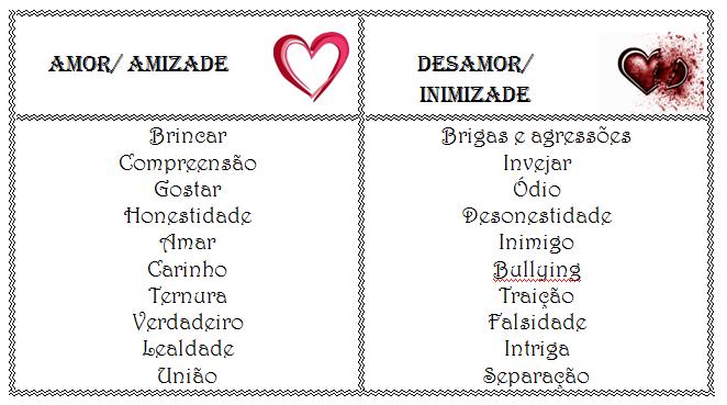 Alguns valores associados ao amor e à amizade.